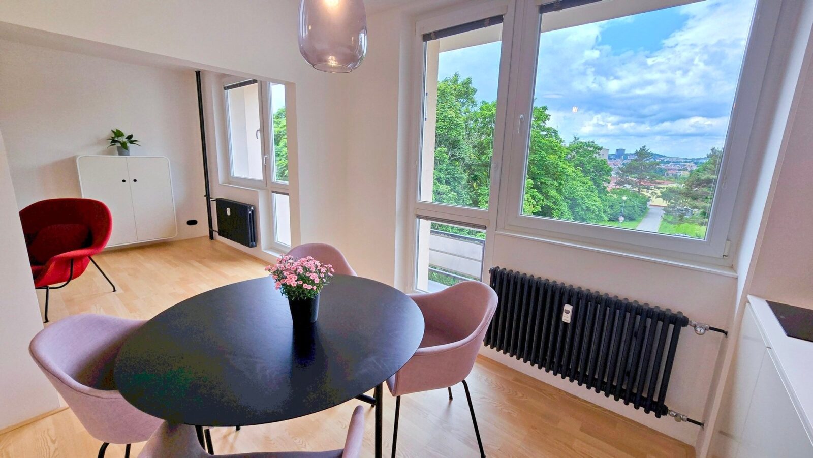 Stylový a prosvětlený byt o dispozici 2+1 o výměře 51m2 po kompletní rekonstrukci v roce 2023. Byt splňuje všechny požadavky komfortního moderního bydlení v klidné a zelené části Brno – Lesná v čtyřpodlažním bytovém domě s výtahem. Dispozice bytu je na JZ. V rámci rekonstrukce proběhla kompletní výměna podlah – jasanové dřevo, rozvodů, omítek, vypínačů ,radiátorů, kompletní rekonstrukce bytového jádra, nová vestavěná linka s elekrospotřebiči AEG které jsou zakomponovány do linky ( zůstávají v ceně bytu). Vstupní dveře do bytu jsou protipožární a bezpečnostního trezorového typu Securido. V bytě se nachází i kompletní šatna s vestavěnou skříní.
